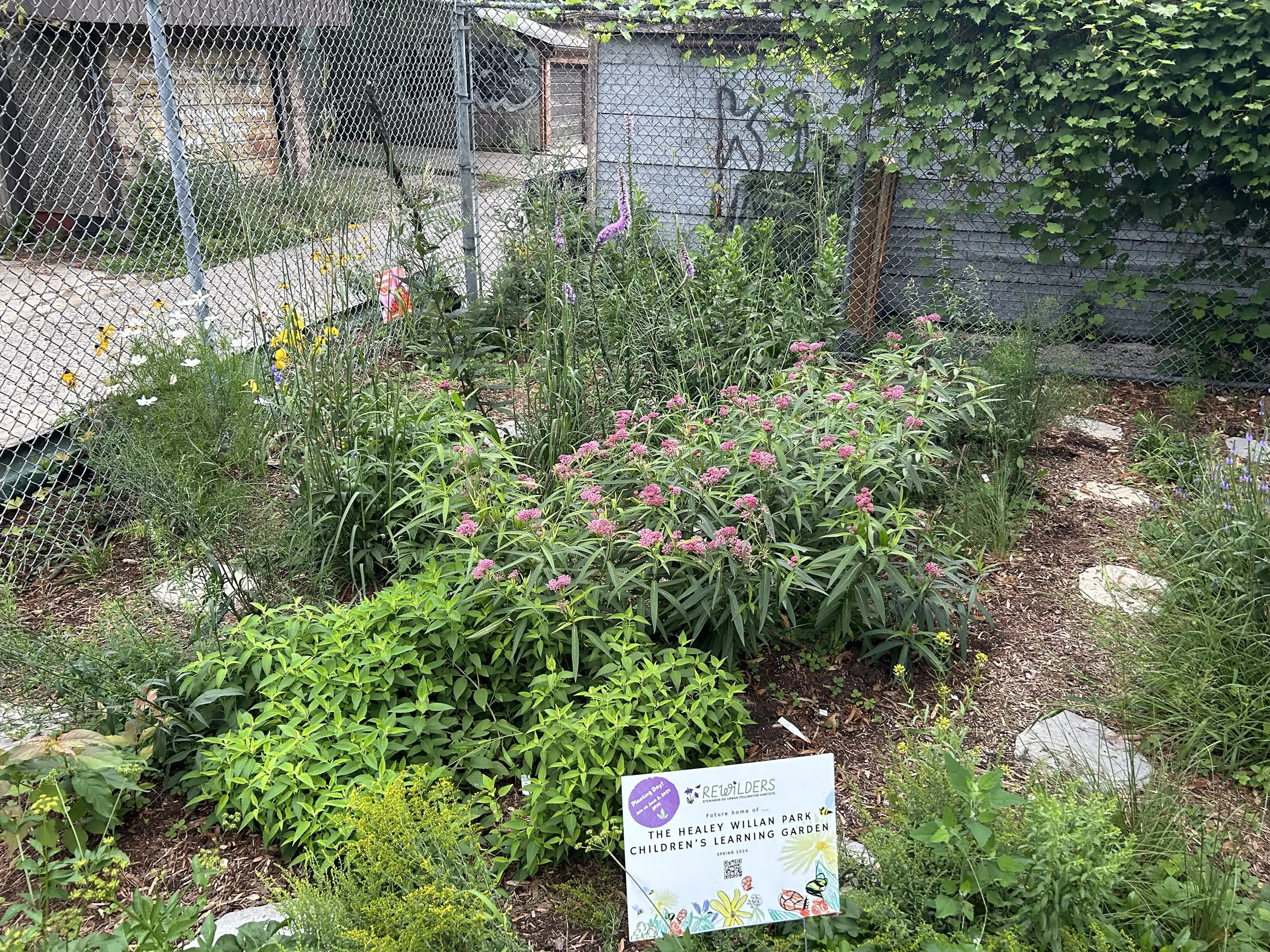 This garden, which was planted in June of 2024, is a place for kids and community to observe the relationship between native plants and pollinators. Tucked in the north west corner of Healey Wilan Park, it also make a great setting for planting, seed harvesting, seed sowing and other educational events.