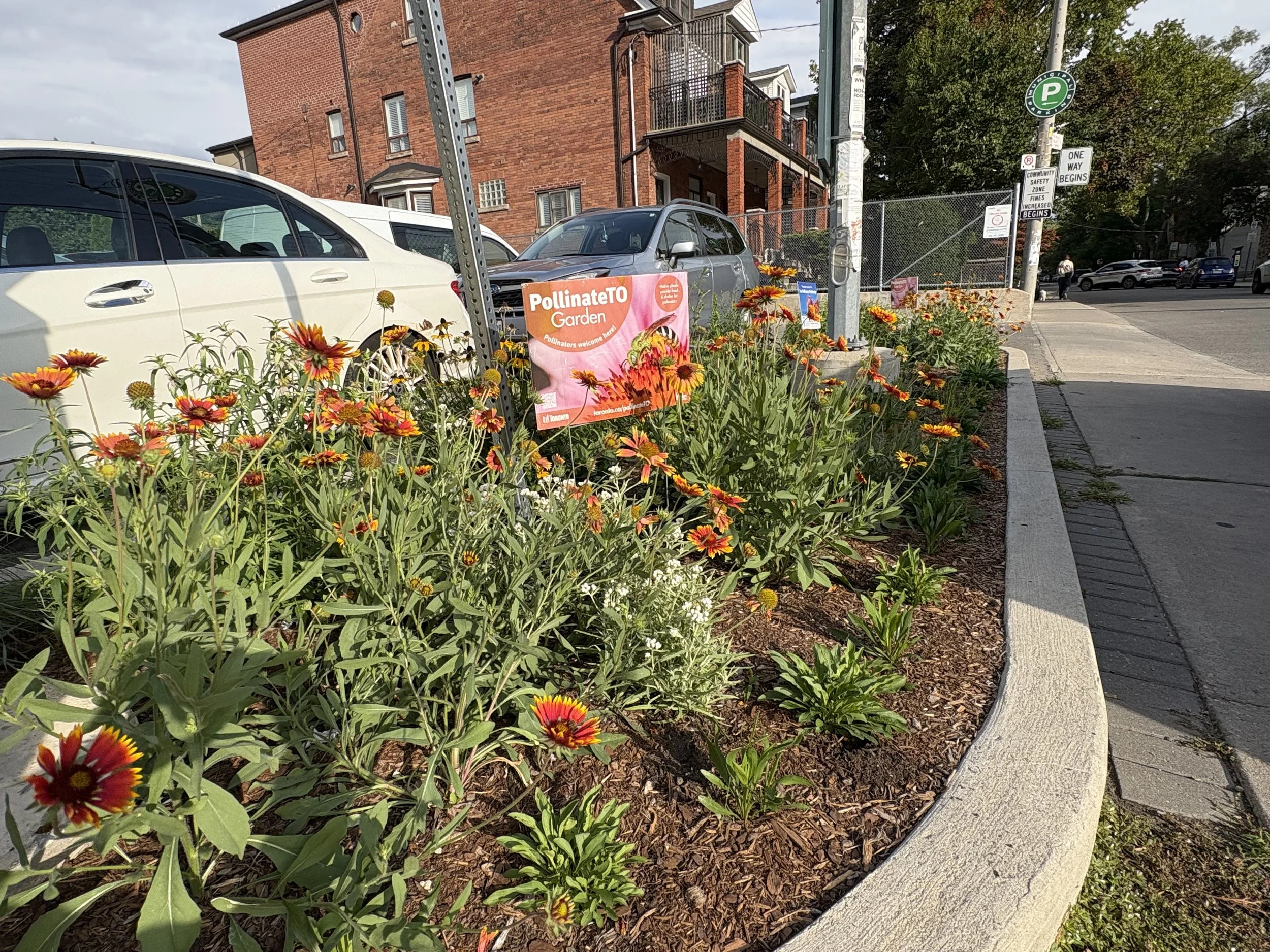 Planted in spring 2023, this garden was created in an unused bed in the Green P parking lot across from the Palmerston Library. Funding for the planting was provided by a PollinateTO grant. Although the garden was unfortunately mowed in 2024, with some care and replanting, it has now fully reestablished.