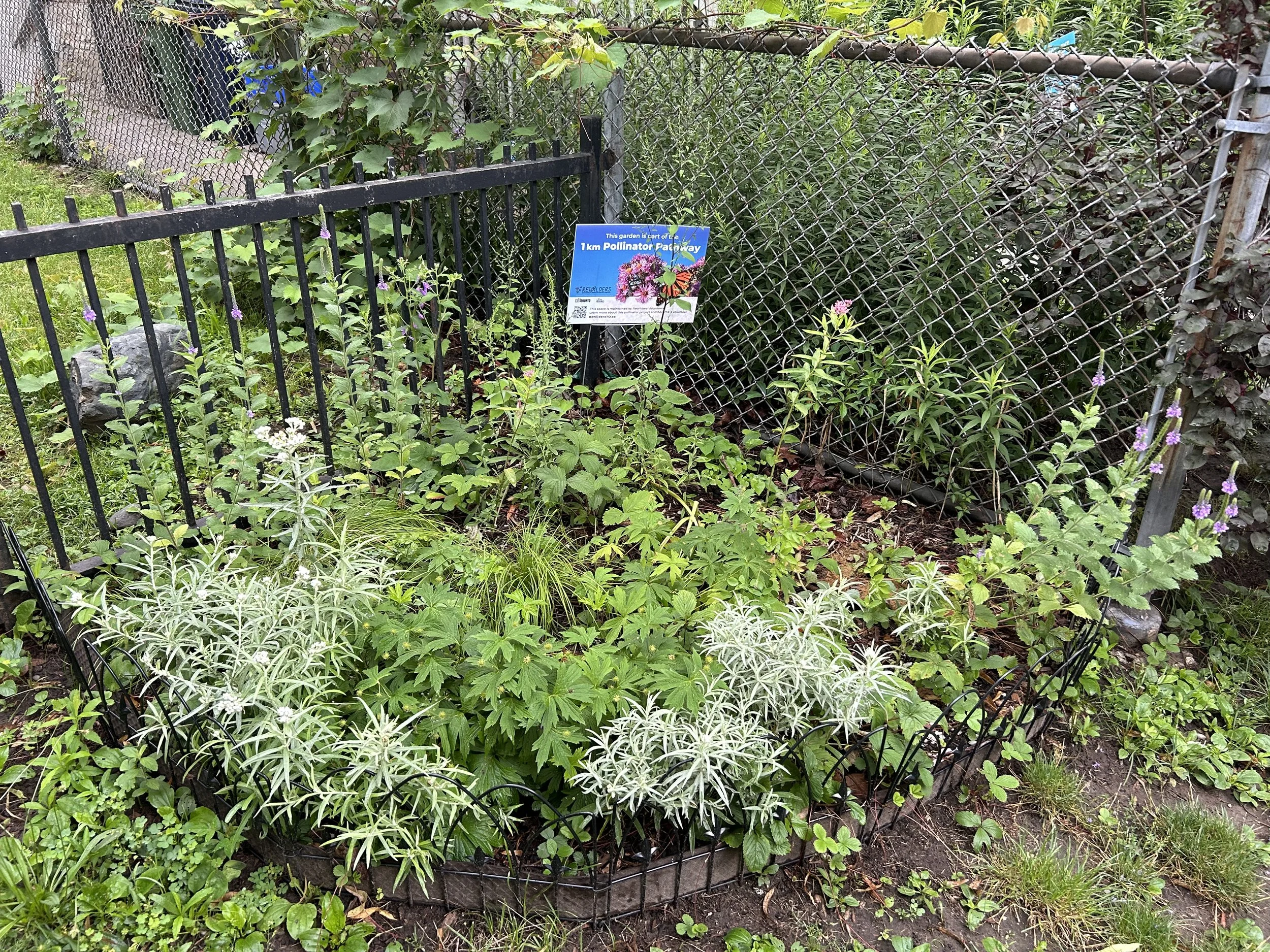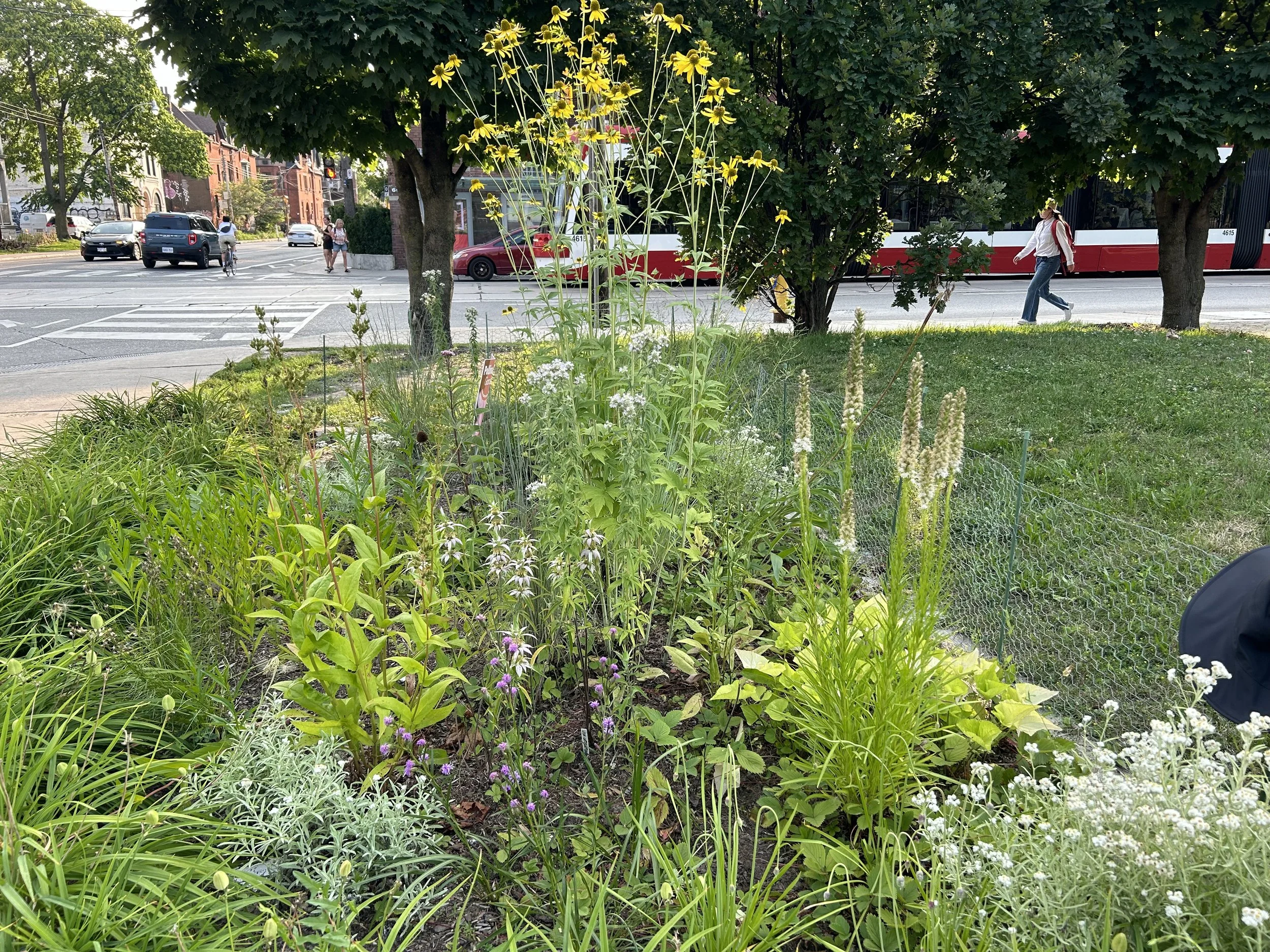 Planted in June 2025, this garden is located across the street from the Markham Street TTC entrance. The plants were grown from plugs cultivated by Rewilders at the Downsview Volunteer Greenhouse. Well-watered during the drought period in the first few weeks, the garden established itself successfully and is expected to flourish for years to come.